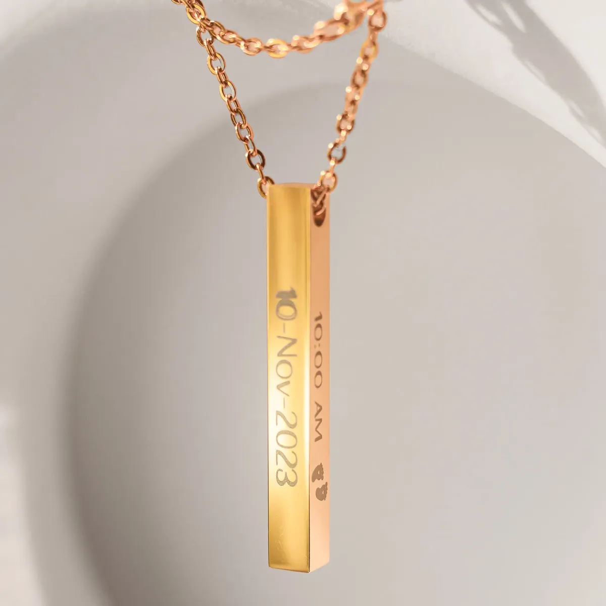 Crafted with precision and designed for personalization, our Custom Engraved 3D Vertical Bar Necklace is the perfect blend of elegance and sentiment. Whether celebrating a milestone or sharing a heartfelt message, this timeless piece captures your love and memories in a unique, meaningful way.